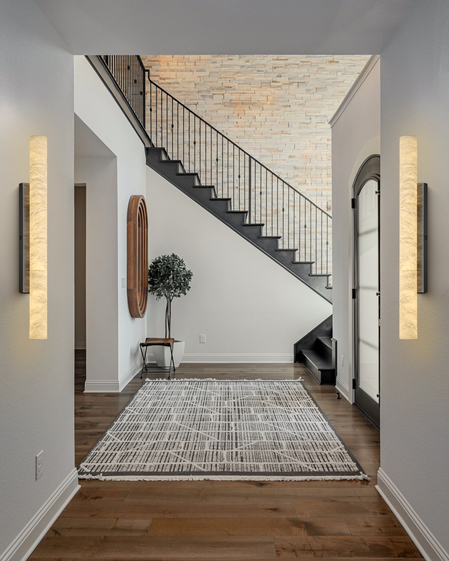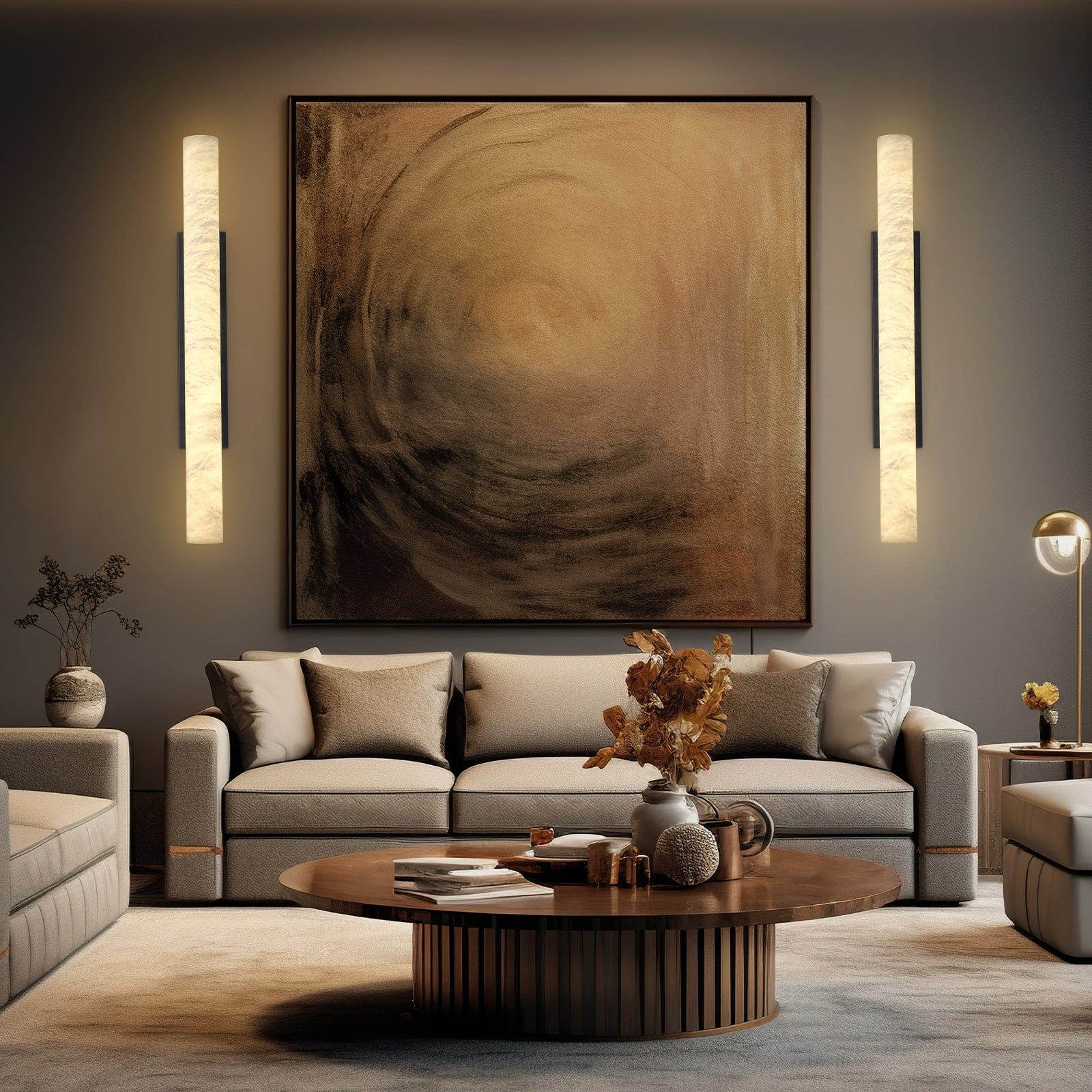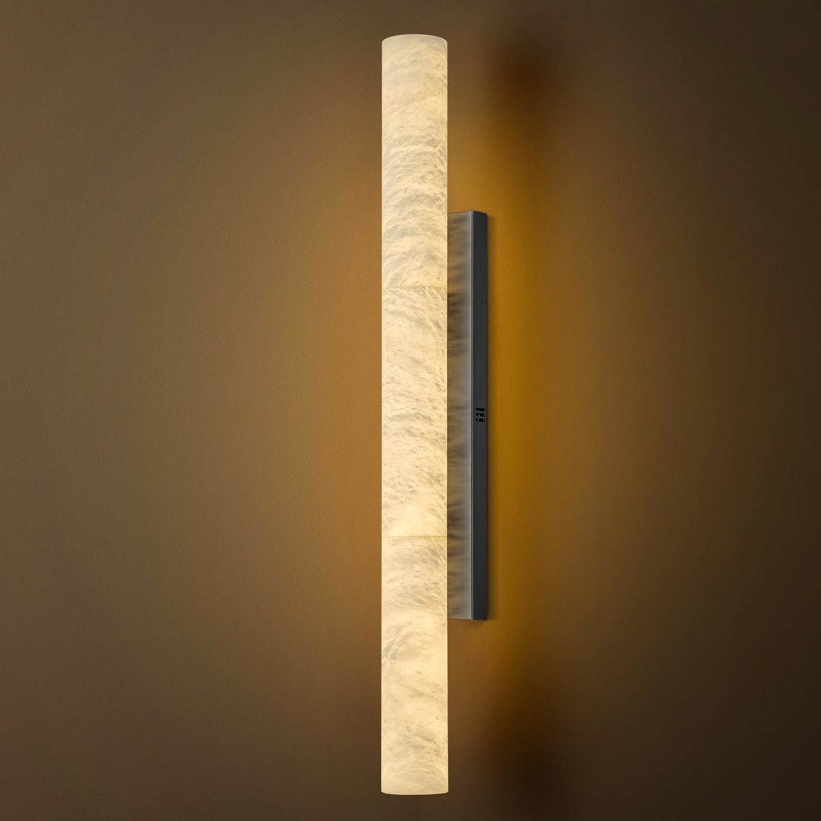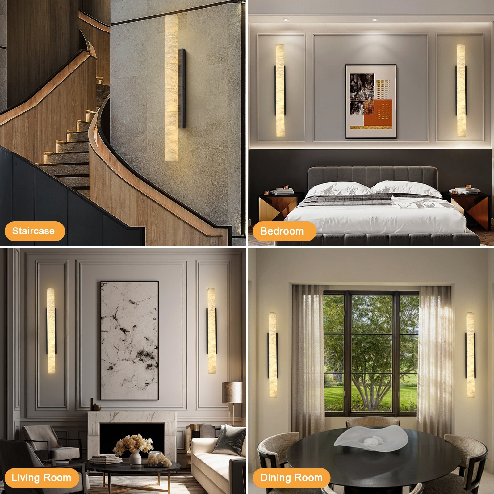 36 in. 1-Light Black LED Wall Sconce, Natural Alabaster Modern Wall Light for Bedroom, Bathroom, Living Room